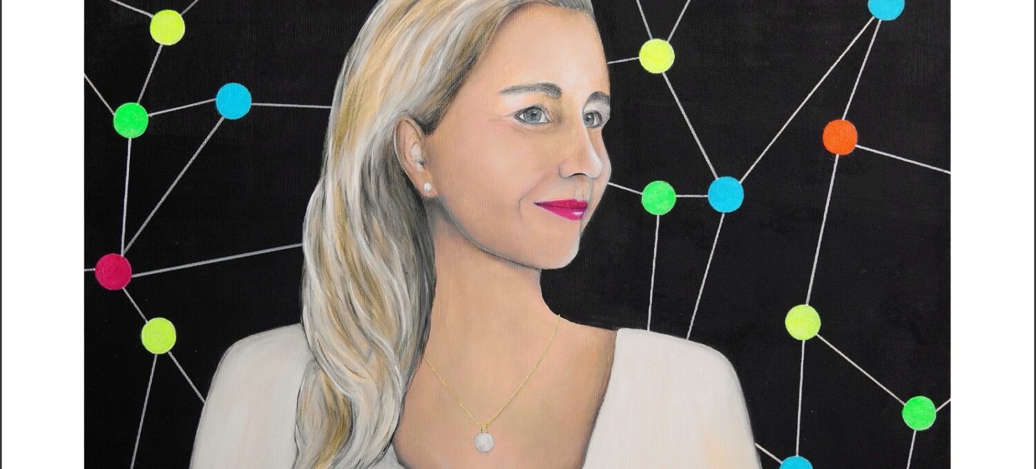 Heike Grimm verbindet vorausschauendes Denken mit einem offenen, positiven Wesen und der Leidenschaft fürs Lernen. Ihr weitreichendes Netzwerk habe ich visuell aufbereitet und in Signalfarben auf dem Hintergrund ihres Classefrauenbildes dargestellt.